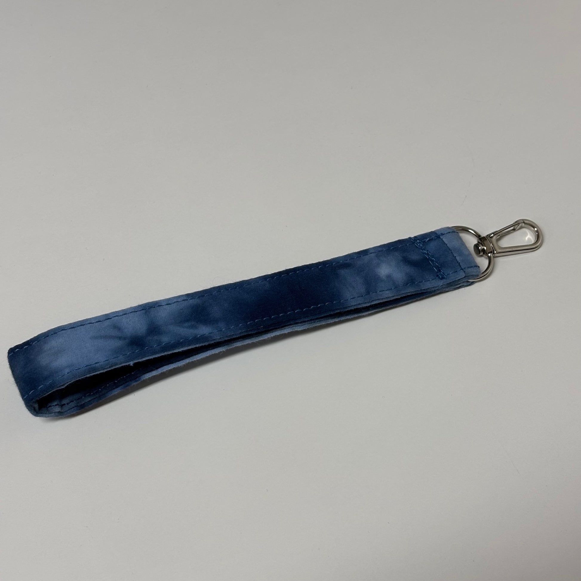 This blue tie-dye fabric is so fun💙 Made with a soft, comfortable fabric and finished with a sturdy swivel clip, it easily attaches to wallets, pouches, keys, or small accessories.