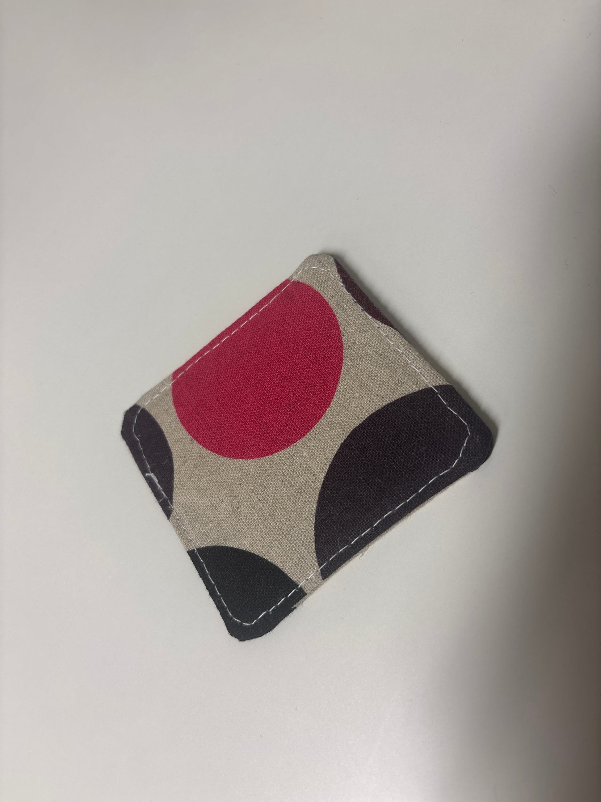 Polka dot bookmark made from canvas fabric with a black cotton back